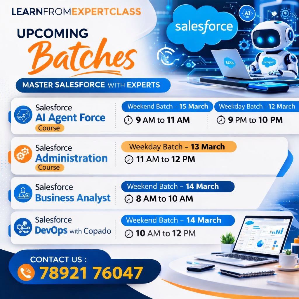 Stay updated with our latest Salesforce training schedules. Upcoming Weekly Batches